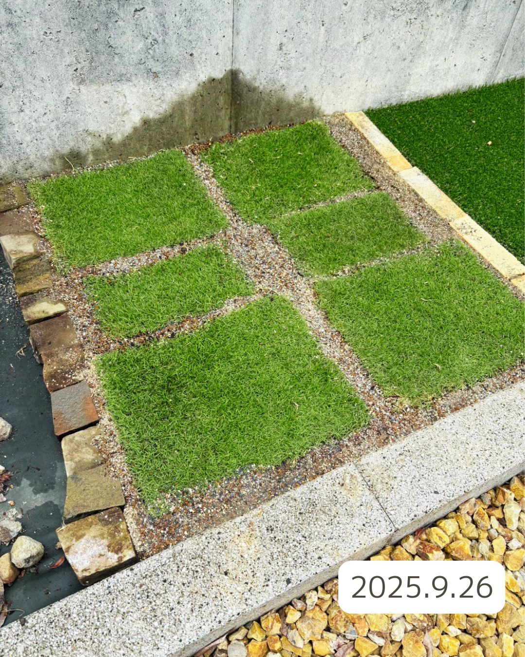 といってもまだ2か月なのでもっと観察が必要ではありますが、姫コウライ芝に比べると縦方向の伸びは1/3以下✨