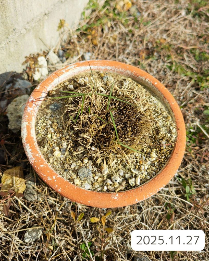 前の記事でも紹介させていただきましたが、ナルオターフと姫コウライ芝の草丈の生長比較で育てていたプランターの姫コウライ芝のほうを枯れさせた事件ですが
