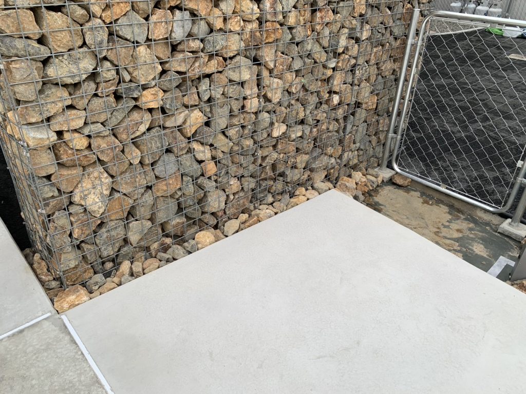 すべての石が収まり、しっかりと固定されたガビオンウォールは、迫力と安定感にあふれています