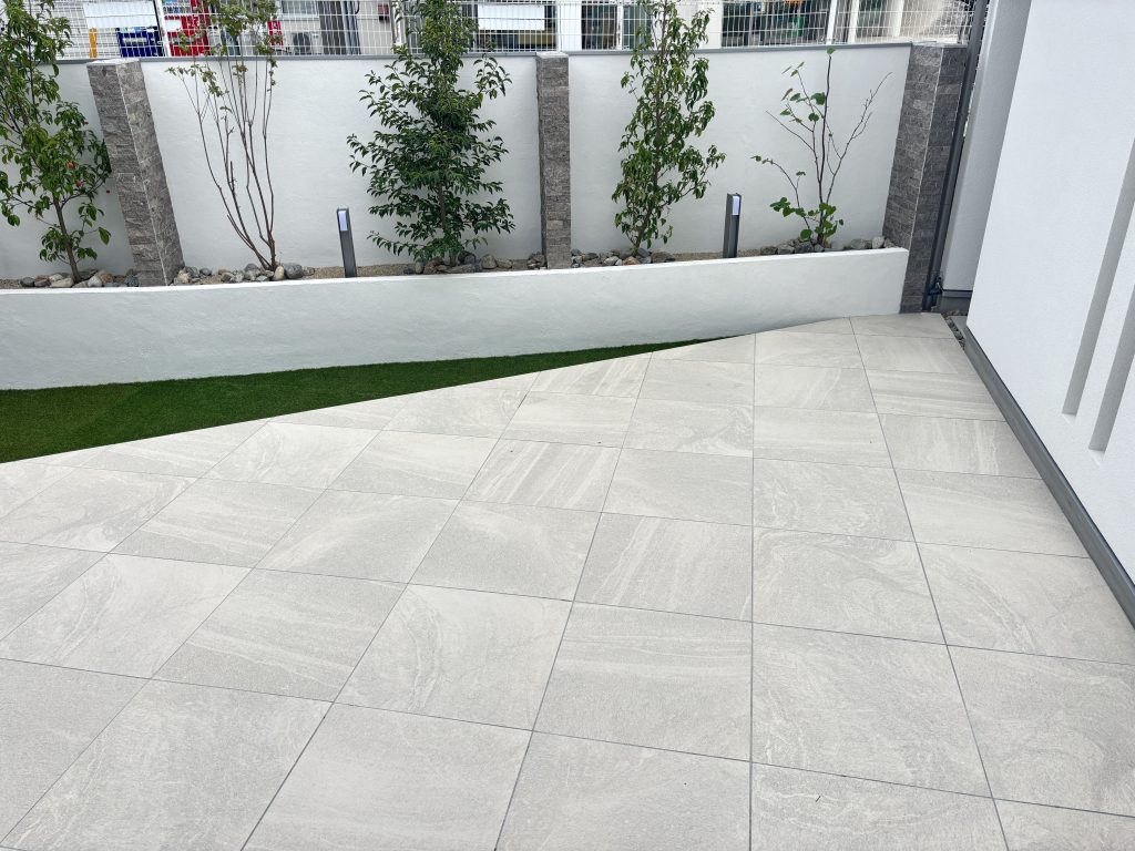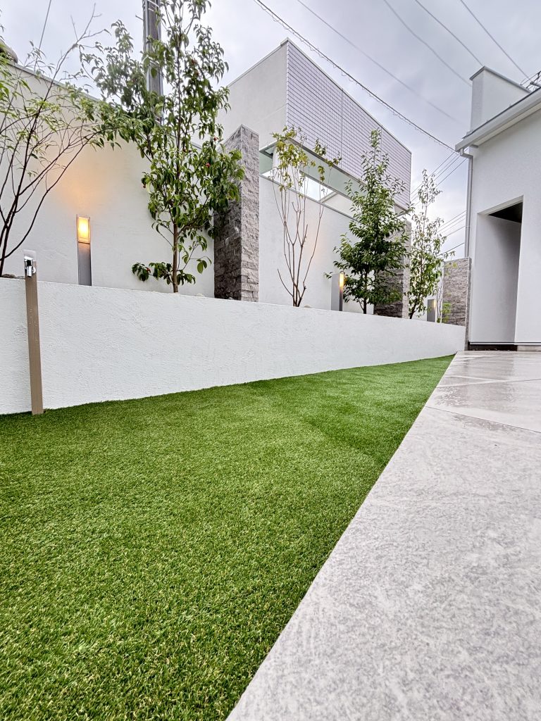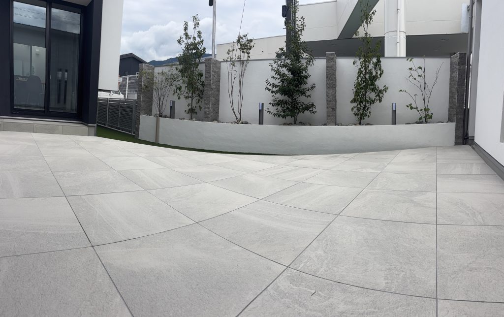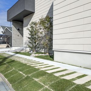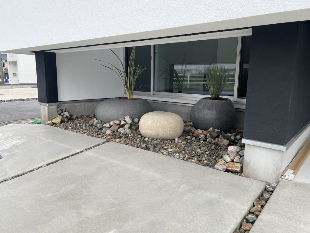 建築コンセプトに合わせ、私たちはこのモデルハウスの外構を施工しました