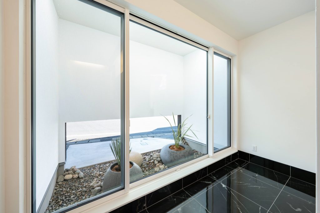 北側(上)と東側(下)にある庭は、外から見せるためのものではなく、室内に光と風を取り込むための“静かな役割”を持つ空間としてあります