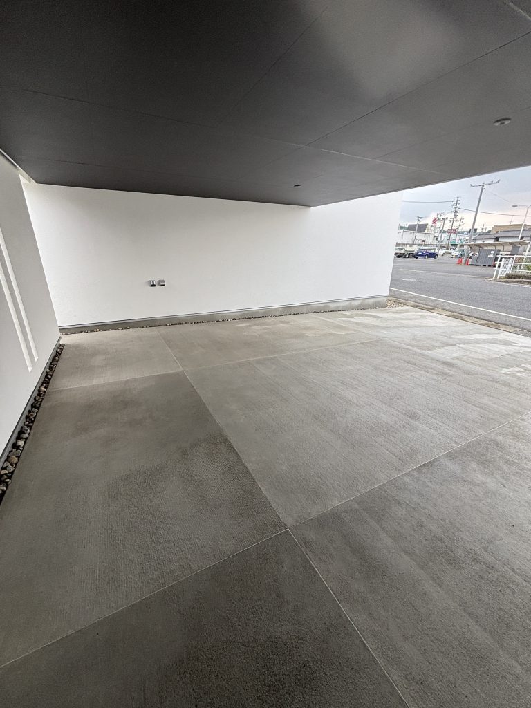 土間コンクリートで統一された駐車場は、段差がなくスムーズに車の出入りができるよう仕上げています
