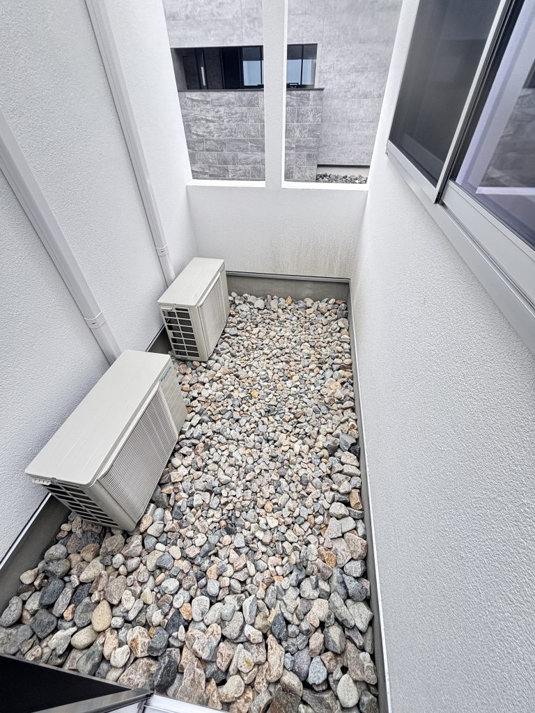 シンプルな外観に溶け込みながらも、斜めにカットされたラインが空間に動きを与え、まるで“建築の一部”のような存在感を放つ仕上がりとなりました
