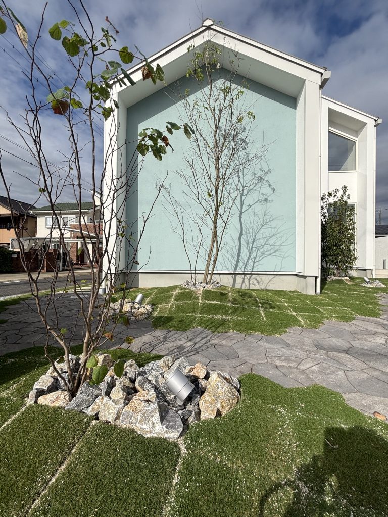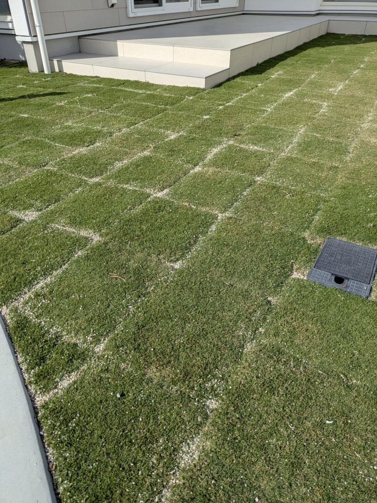 施工直後からすでに落ち着いた印象を与え、人工芝のような均整美と天然芝の自然味を兼ね備えています