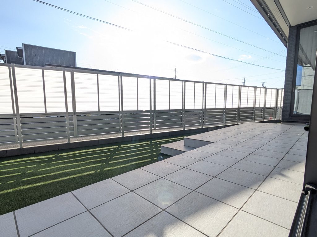 明るい色味が日差しをやわらかく反射し、タイルテラスと人工芝のグリーンを一層引き立ててくれるため、全体として軽やかで明るいテラス庭に仕上がりました